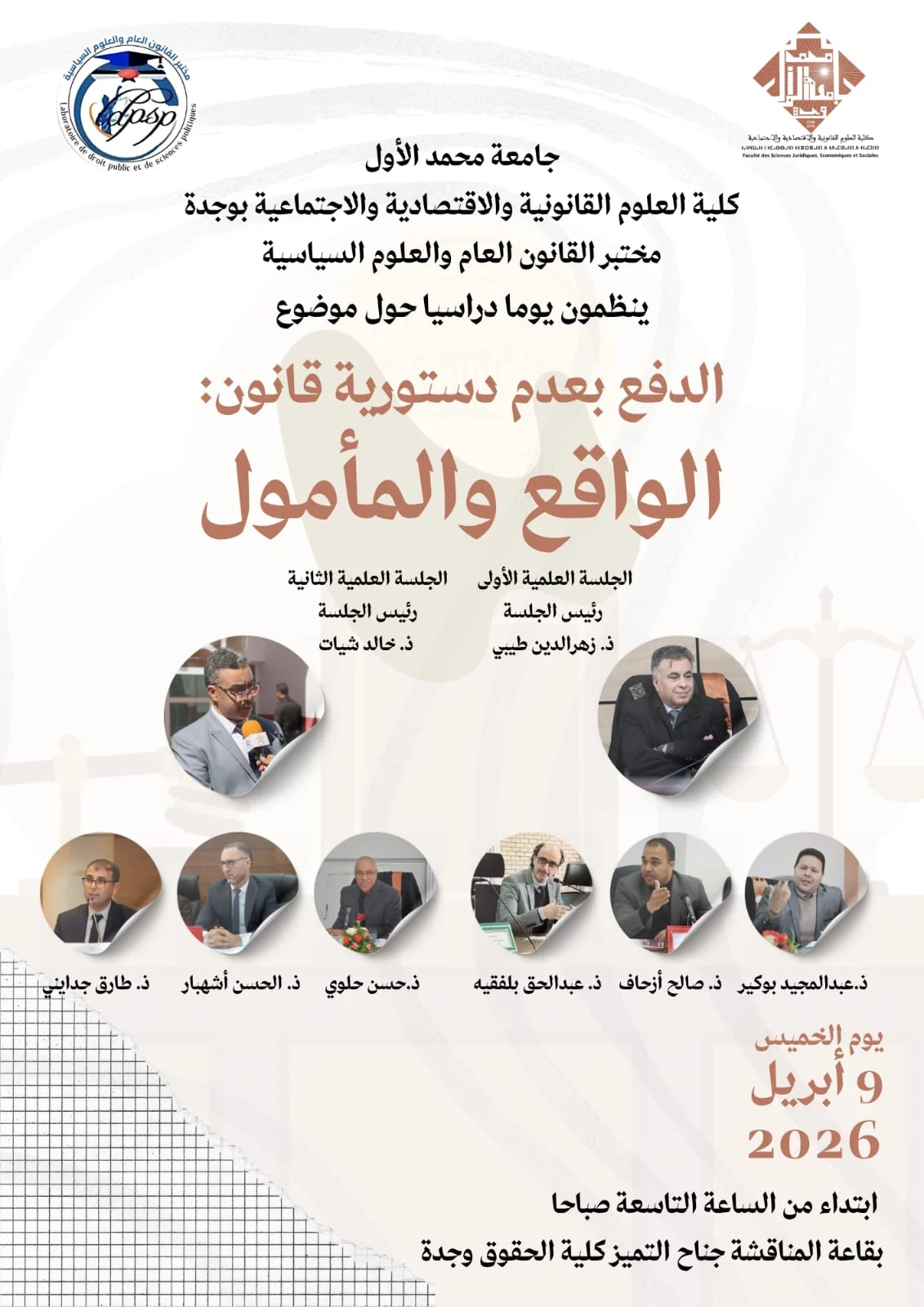 احتضنت كلية العلوم القانونية والاقتصادية والاجتماعية بوجدة، التابعة لـ جامعة محمد الأول، يوم الخميس 9 أبريل 2026، يوماً دراسياً متميزاً حول موضوع: