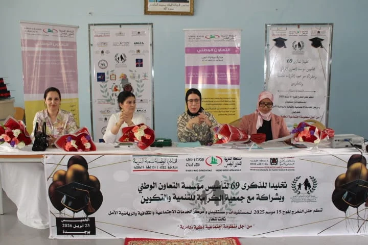 في أجواء احتفالية مفعمة بروح التضامن والعطاء، نظمت المديرية الجهوية للتعاون الوطني بجهة الشرق، بشراكة مع جمعية الكرامة للتنمية والتكوين برئاسة السيدة مليكة الزرهوني، حفلاً مميزاً يوم الخميس 23 أبريل، بمركز الخدمات الاجتماعية والثقافية والرياضية “الأمل”، وذلك تخليداً للذكرى التاسعة والستين لتأسيس التعاون الوطني، تحت شعار: “من أجل منظومة اجتماعية ذكية ودامجة”.